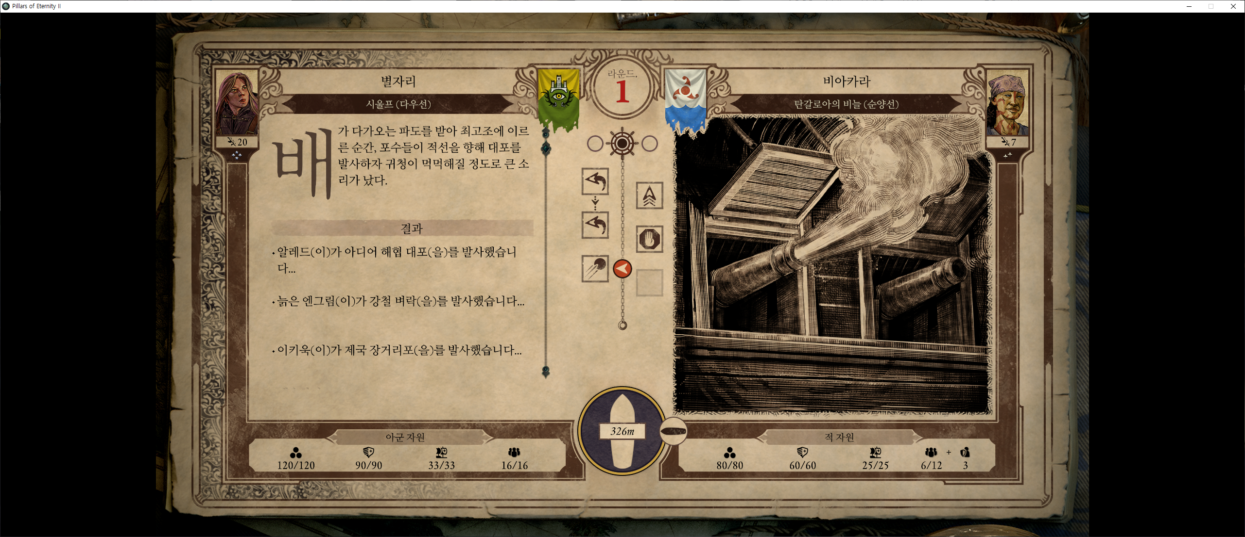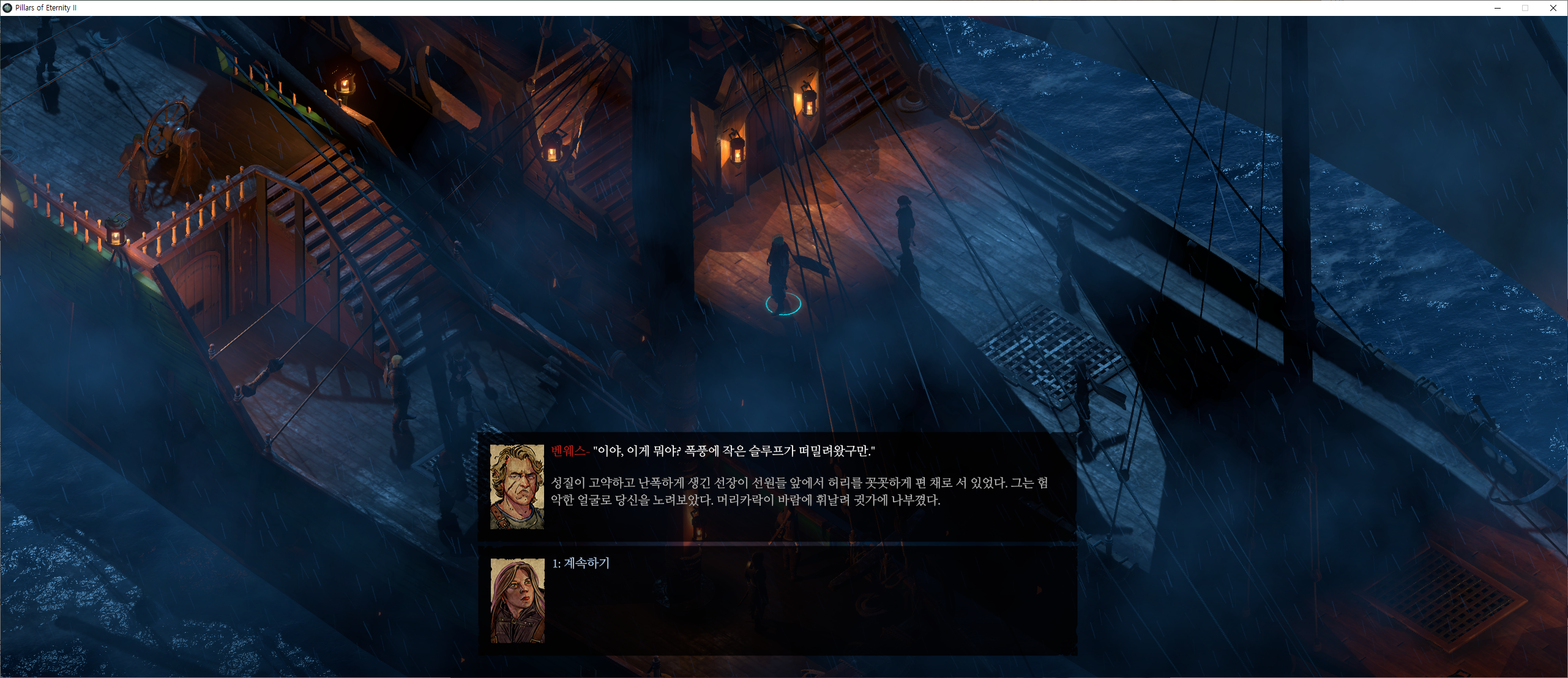 게임 진행시 유의할 점은 주시자를 포함한 동료의 레벨 제한은 20레벨이며 야영, 휴식의 제한이 없어 전체 난이도가 감소한 반면, 한 캐릭터가 심각한 부상이 쌓여 부상 정도가 3이 되면 사망하기 때문에 적절한 휴식이 담보되어야 한다는 점을 간과해서는 안 됩니다. 특정 동료가 수행할 수 있는 퀘스트는 전작과 같이 그룹에 그 동료가 반드시 포함되어 있어야 진행 가능하며 해상탐험으로 발견한 섬의 유적 탐사에 성공하면 섬의 작명을 할 수 있습니다. 또한 선원 모집 후 게임 진행시간으로 하루가 경과하면 선원들의 급료가 자동 지급되고 선박의 건조와 활성화는 항구도시 네케타카에서 가능합니다. 그리고 출항할 때는 물자 공급과 선원들의 사기에 주의해야 하고 입항 후에는 지역지도의 좌측 아래에 자리한 바다 이동, 도보 이동을 선택하여 현재 도시를 벗어나 출항 준비 혹은 섬 내부로 진입할 수 있습니다. 참고로 수배범을 처리하며 경험치와 명성, 구리 동전을 획득할 수 있고 특정 섬 가운데는 암호수 석호처럼 이야기와 무관한 우두머리가 배치되어 플레이어의 도전을 자극합니다. FIN.