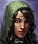 | 잉그위스 유적지에서 재회하게 되는 동료. 납 열쇠회를 추적하던 도중 그 일부 분파의 발자취를 데드파이어 군도에서 발견해서 이를 뒤쫓다 플레이어를 만나게 된다. 전작에 등장한 다른 동료들과 달리 새로 등장하는 캐릭터들 중 영매사인 세라펜을 제외한 다른 동료들에게 별다른 거부감이나 마찰 없이 잘 지내는 편이다. | |